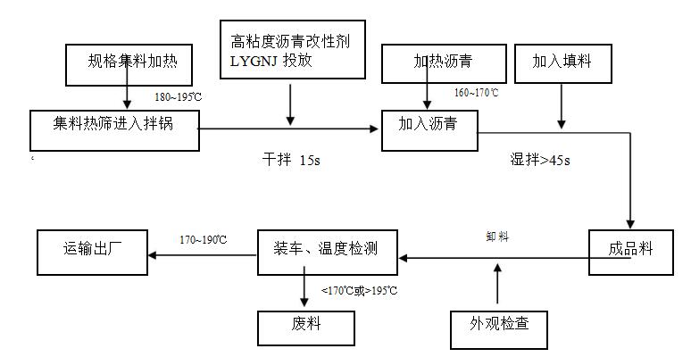 加入 LYGNJ 后的干拌時間不宜少于 15s,用以保證 LYGNJ 的充分熔融。噴入瀝青后的濕拌時間,應根據拌和情況適當調整,通常不少于 45s,保證熔融后的 LYGNJ 能與瀝青充分混融。